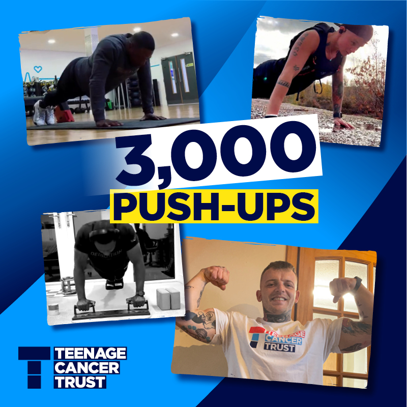 Do 3,000 push-ups between 1st and 30th June. Commit to the challenge. Start fundraising. Get the t-shirt. Support young people with cancer.