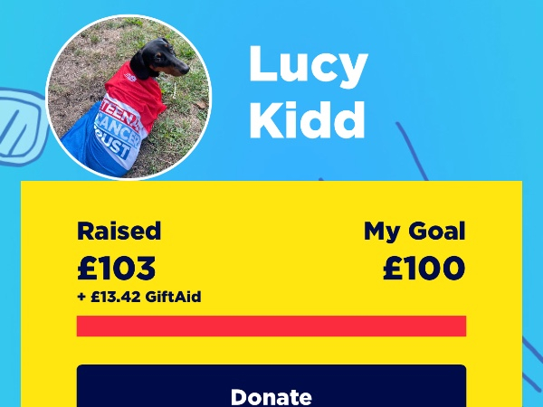 This September, I'm walking 60 Miles with my dog and raising funds to help ensure no young person faces cancer alone. I'm taking on the challenge for Teenage Cancer Trust, the only UK charity who provides specialised nursing care and support for young people with cancer. I'd be grateful for your support.Your donation, big or small, makes a difference. £25 could pay for an hour with a Youth Support Coordinator to help a young person cope with anxiety and isolation during cancer treatment.