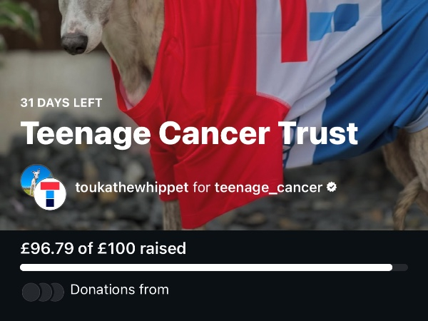 Friday 29th Aug My fundraising link is attached to my instagram @toukathewhippet.